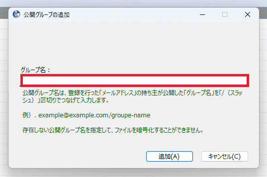 グループを利用すると、グループ内のメールアドレスの持ち主だけが復号可能な暗号化ファイルの作成が可能です。